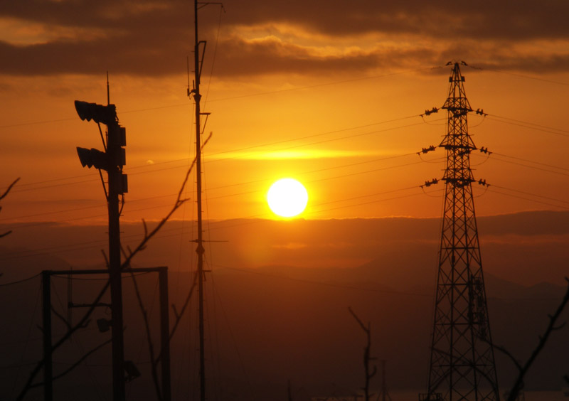 ・2007年、広島の初日です。 雲の上から、見事にまん丸なお日様があがりました。(写真)